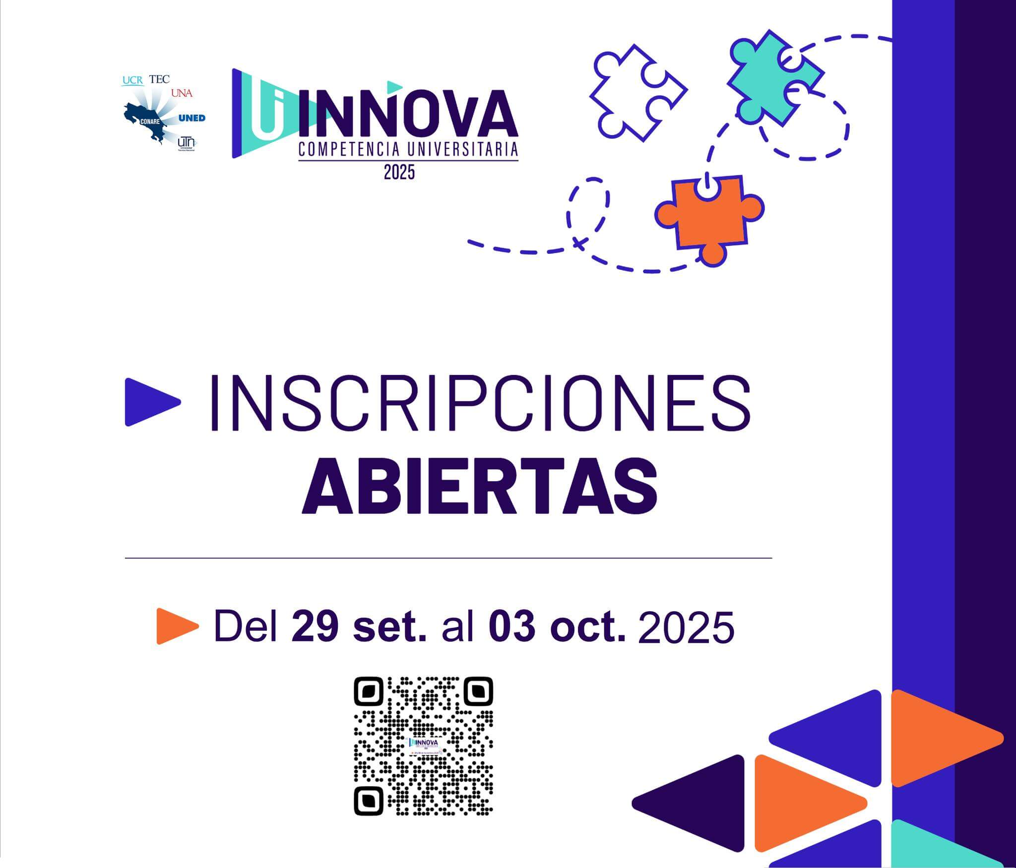 Estudiantes de universidades públicas (UNA, UCR, TEC, UNED y UTN) están convocados a participar en UInnova 2025, competencia nacional de innovación abierta, que se realizará el 1 y 8 de noviembre. La primera jornada será virtual y la segunda presencial.