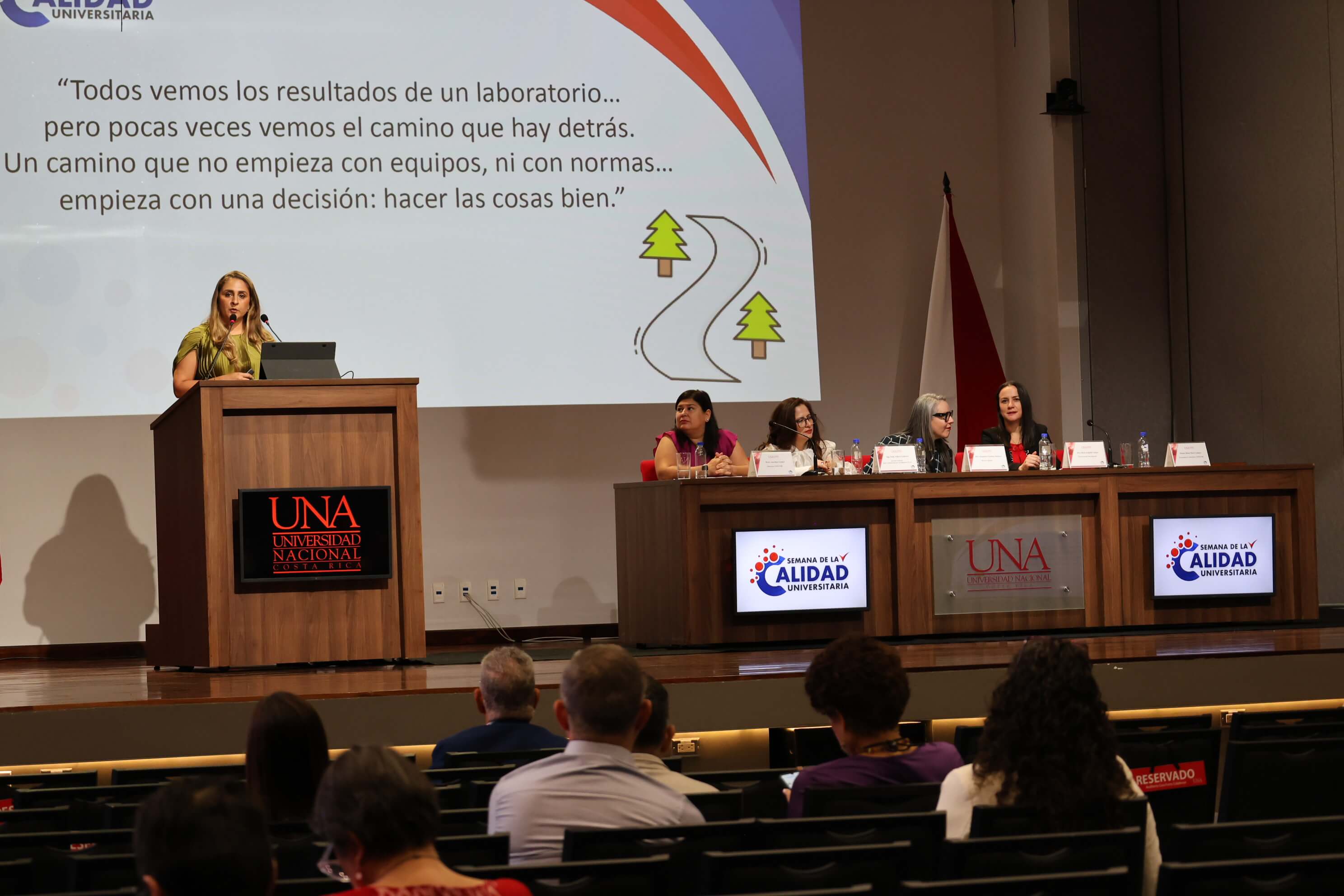 Durante la actividad, la rectora adjunta Alejandra Gamboa Jiménez, comentó que “la acreditación no es un punto final”, sino que forma parte de “un proceso continuo de fortalecimiento institucional”, y advirtió que su sentido no se agota en el cumplimiento de normas. Desde su perspectiva, “la calidad no se limita a estándares o reconocimientos formales”, sino que se expresa en la forma en que la universidad produce conocimiento y responde a las necesidades del país. En esa línea, mencionó que estos procesos también permiten “tomar decisiones más informadas, optimizar el uso de los recursos públicos y fortalecer la rendición de cuentas”.