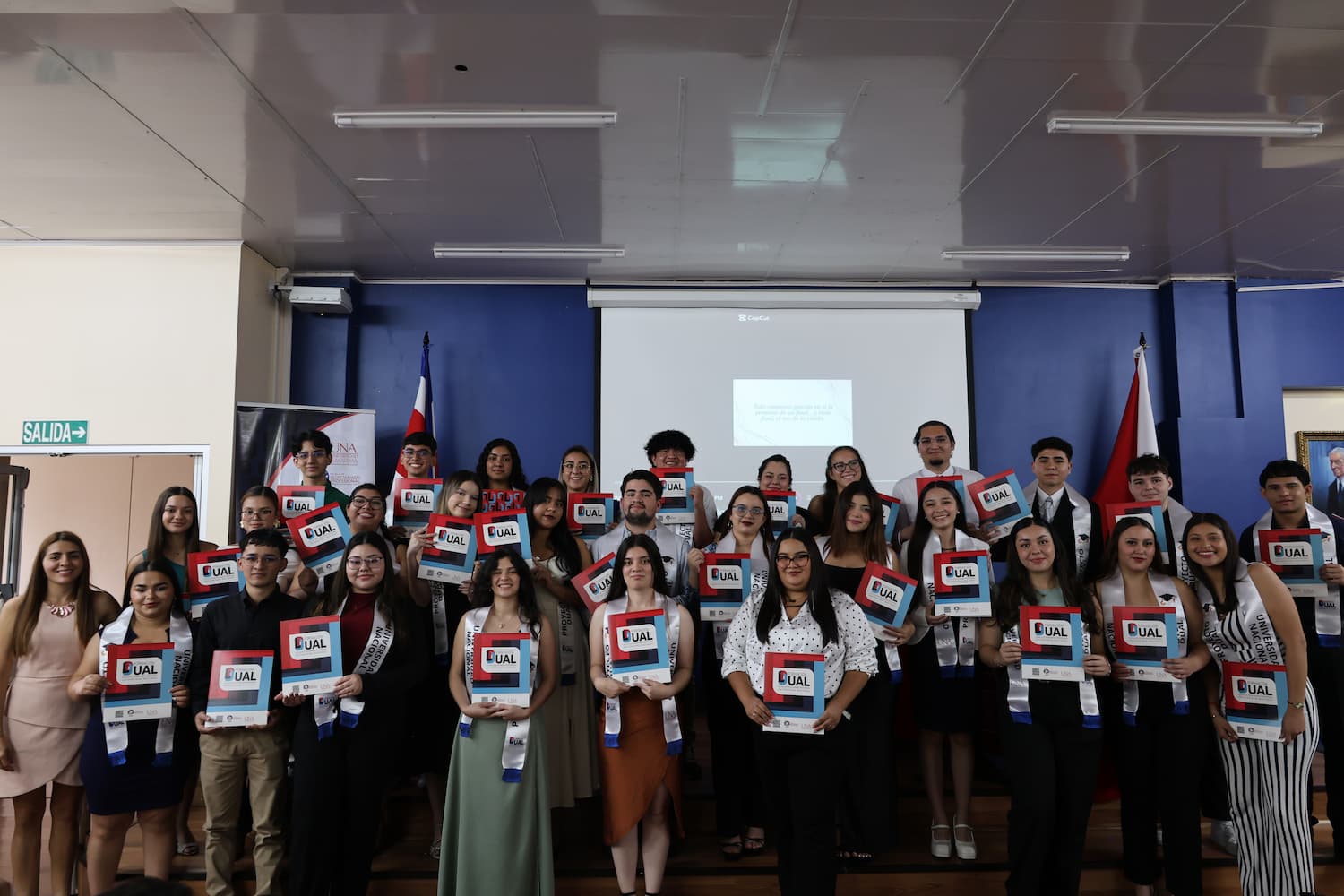 Así lo indicaron los propios estudiantes de la generación 2025 del proyecto de educación dual. En su exposición describieron que aspectos relacionados con la gestión del tiempo, la adaptabilidad, la comunicación asertiva, el pensamiento crítico, la administración de documentos, el trabajo en equipo y el servicio al cliente, fueron parte de los aprendizajes obtenidos en los últimos meses.