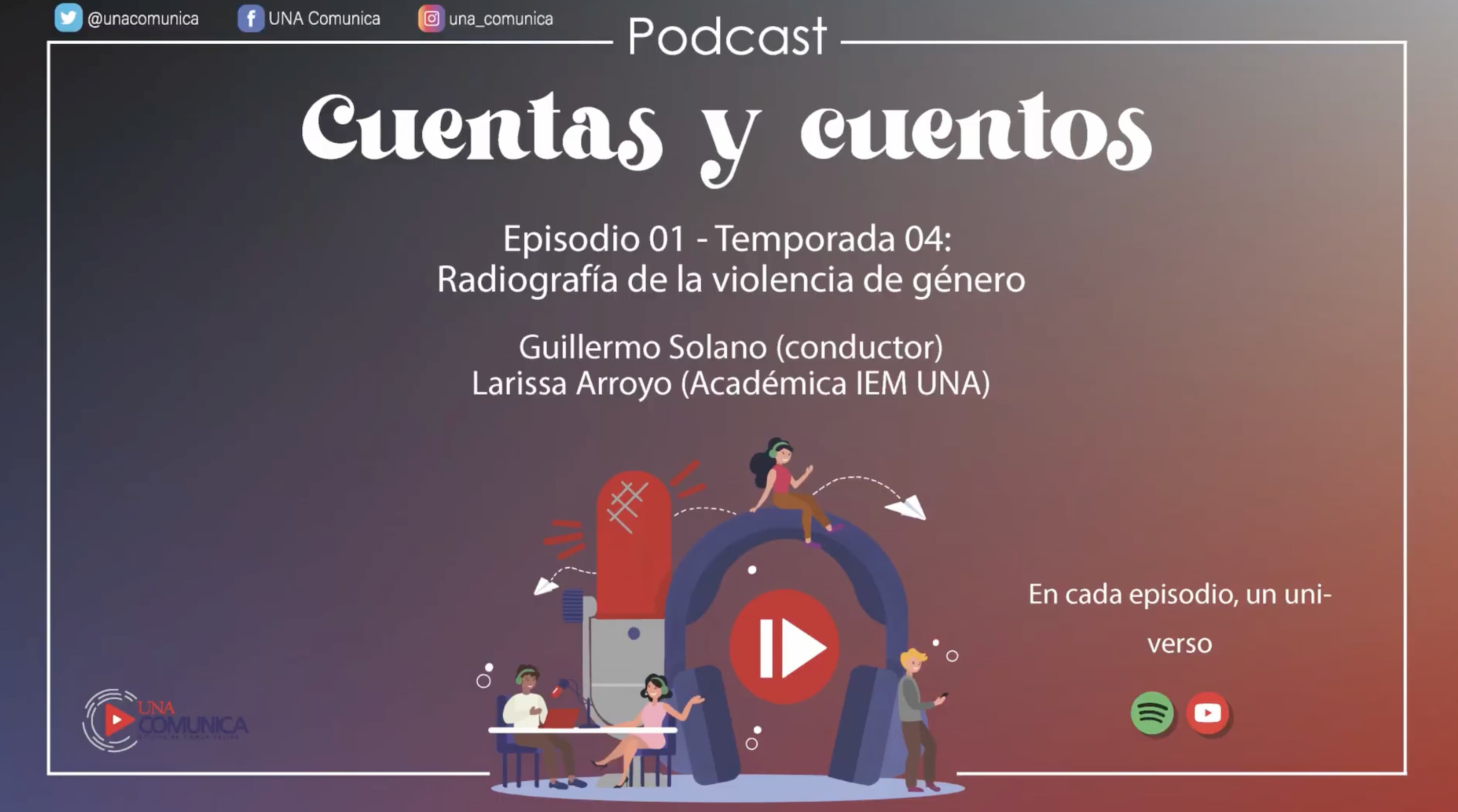 El podcsat puede verlo y escucharlo desde el canal de YouTube de UNA Comunica y en Spotify: