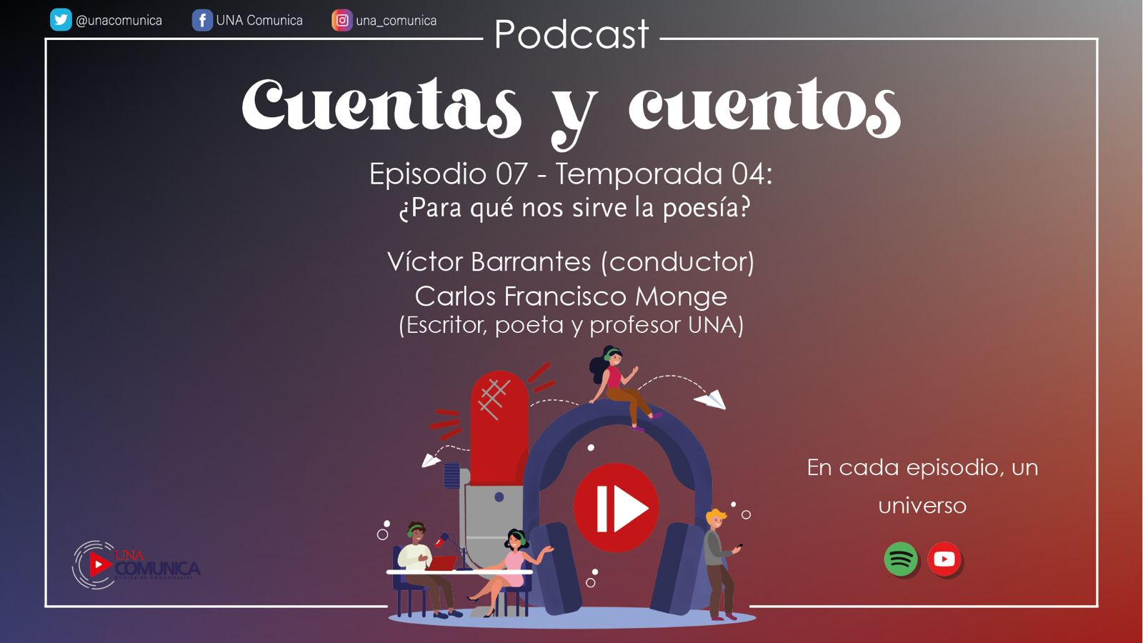Este episodio está disponible en el perfiles de YouTube en la plataforma de Spotify de UNA COMUNICA.